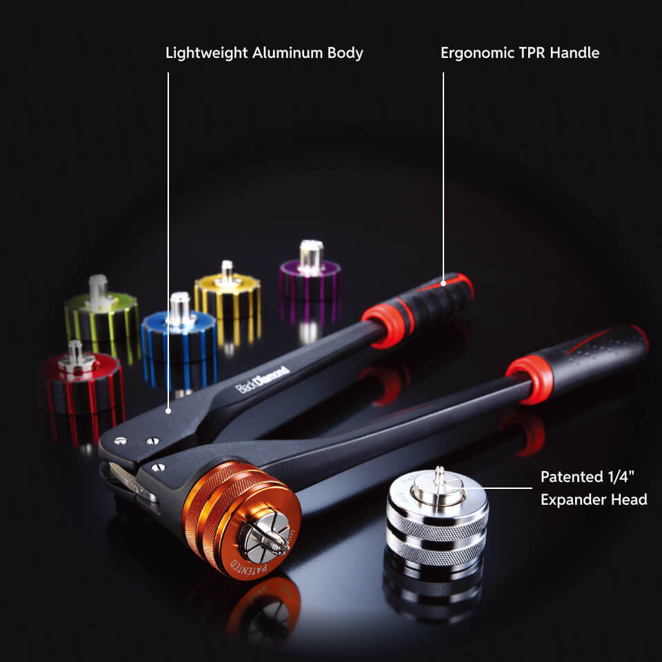 Our multi size tube expander set features 8 color coded expander heads to make choosing the right one for your task easy. We also include the industry’s first 1/4” tube expander for the smallest pipe fittings.